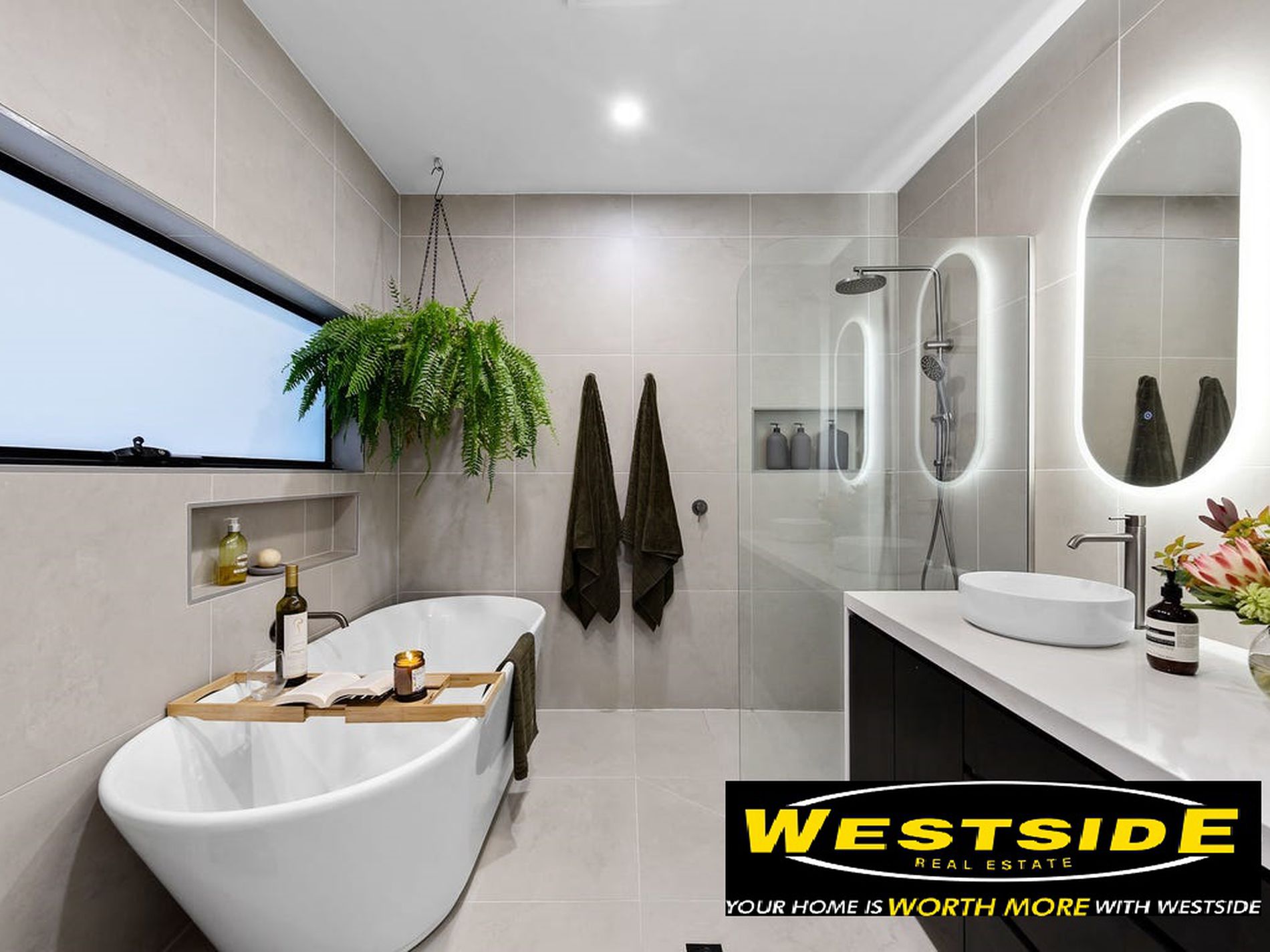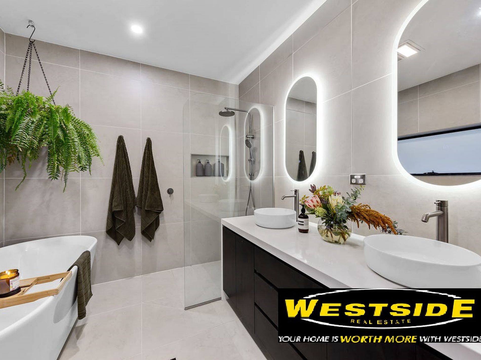 All three bedrooms come equipped with built-in robes, while the central designer bathroom elevates daily living with its freestanding bathtub, oversized walk-in shower, double stone-top vanity, and LED-lit mirrors.