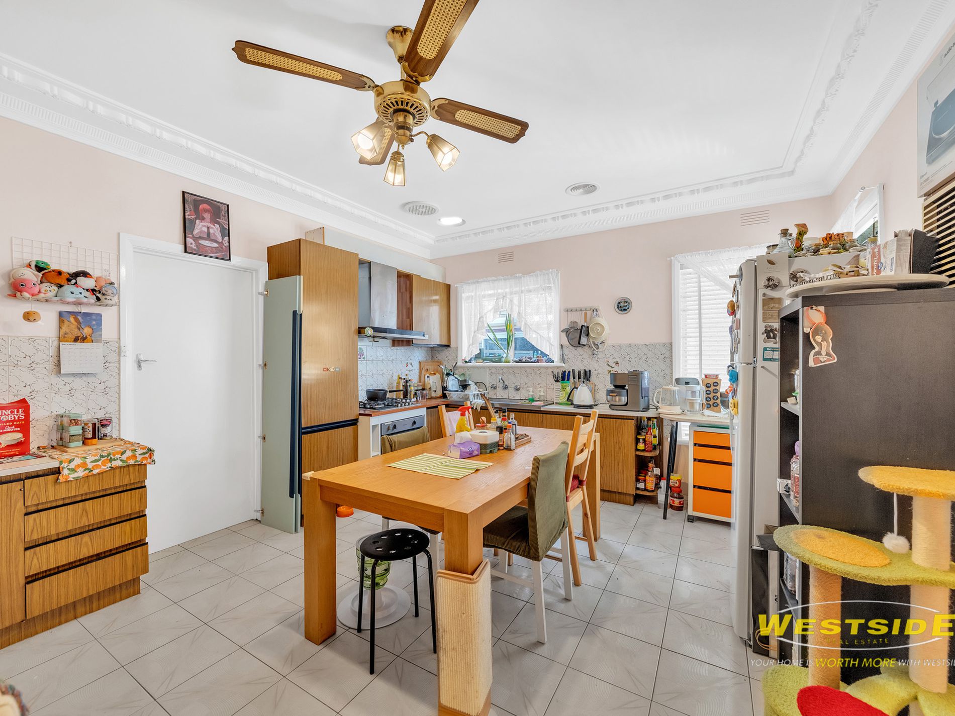 Set on a generous 699m² (approx.) allotment in a well-established and high-demand pocket of St Albans, 14 Curtin Street presents a compelling opportunity for investors, extended families, or buyers seeking flexible living with strong long-term upside. The front residence offers three well-proportioned bedrooms, a central bathroom, and the comfort of ducted heating and split system cooling. The home is enhanced by polished hardwood flooring, adding warmth and durability, while the classic terracotta roof contributes to both street appeal and long-term value